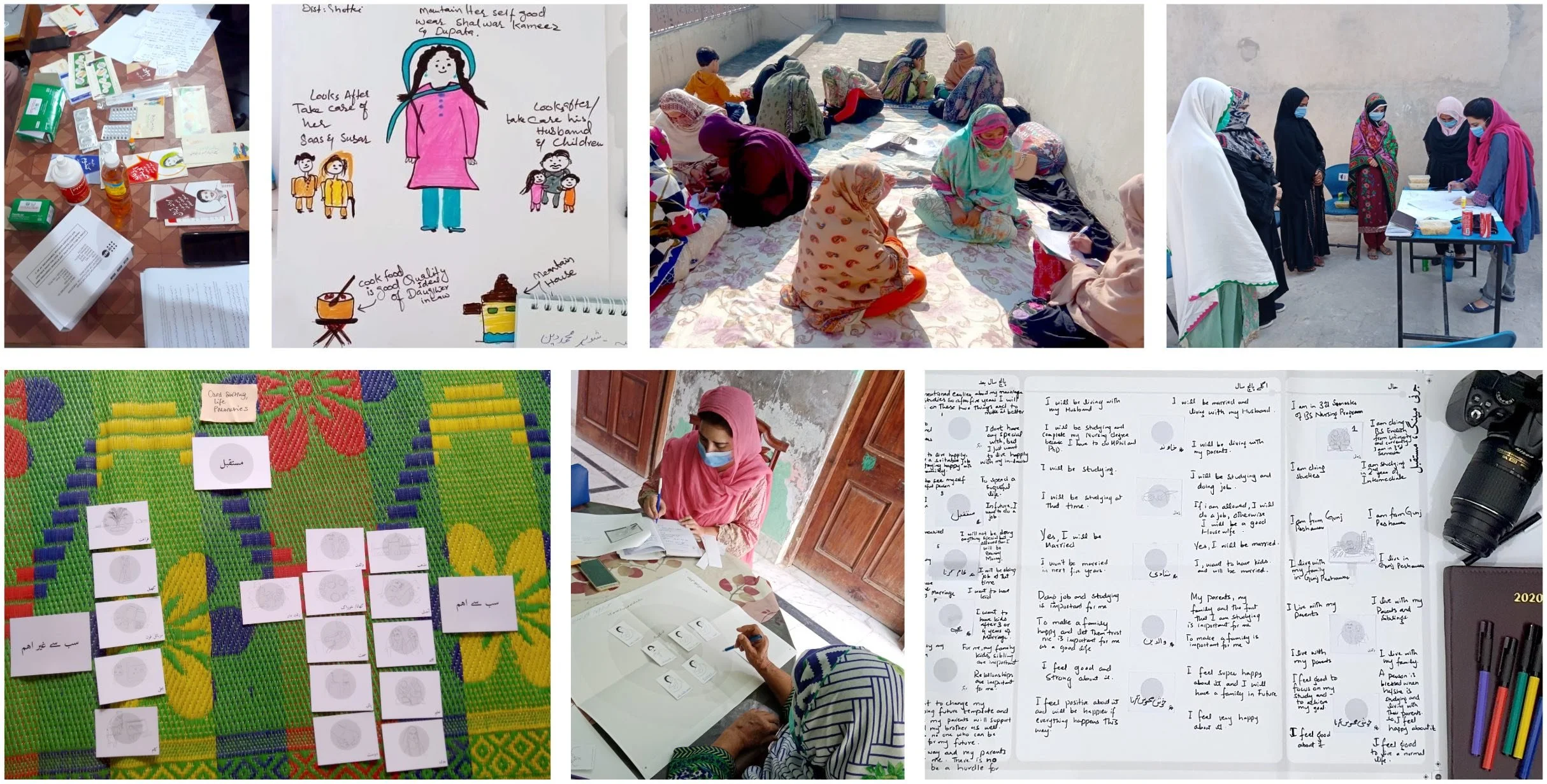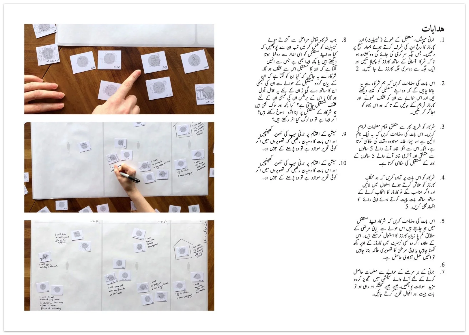 This included activity templates and detailed photo instructions demonstrating how each tool could be used. All research tools and guidance were translated and contextualised into Urdu by Icarus, and in areas of Pakistan where Urdu was not the dominant language, field researchers provided verbal translations into local languages.